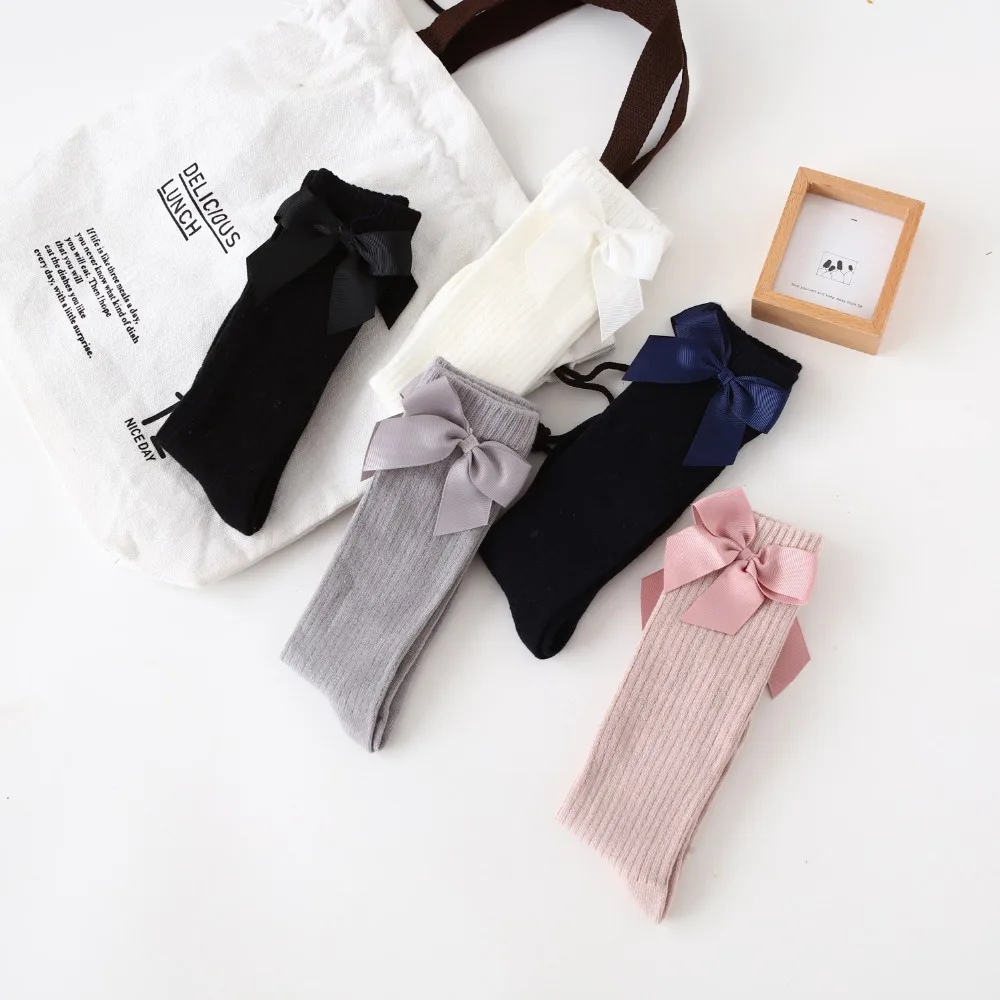 Children's Sock Girls Knee High Socks With Bows Stripped Toddlers Long Socks Kids School Sock Infant Baby Socken